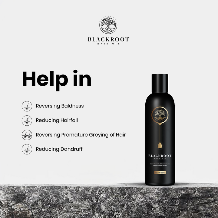 Transform your hair with Blackroot Hair Oil, a 100% natural formula designed to combat hair loss and promote regrowth.